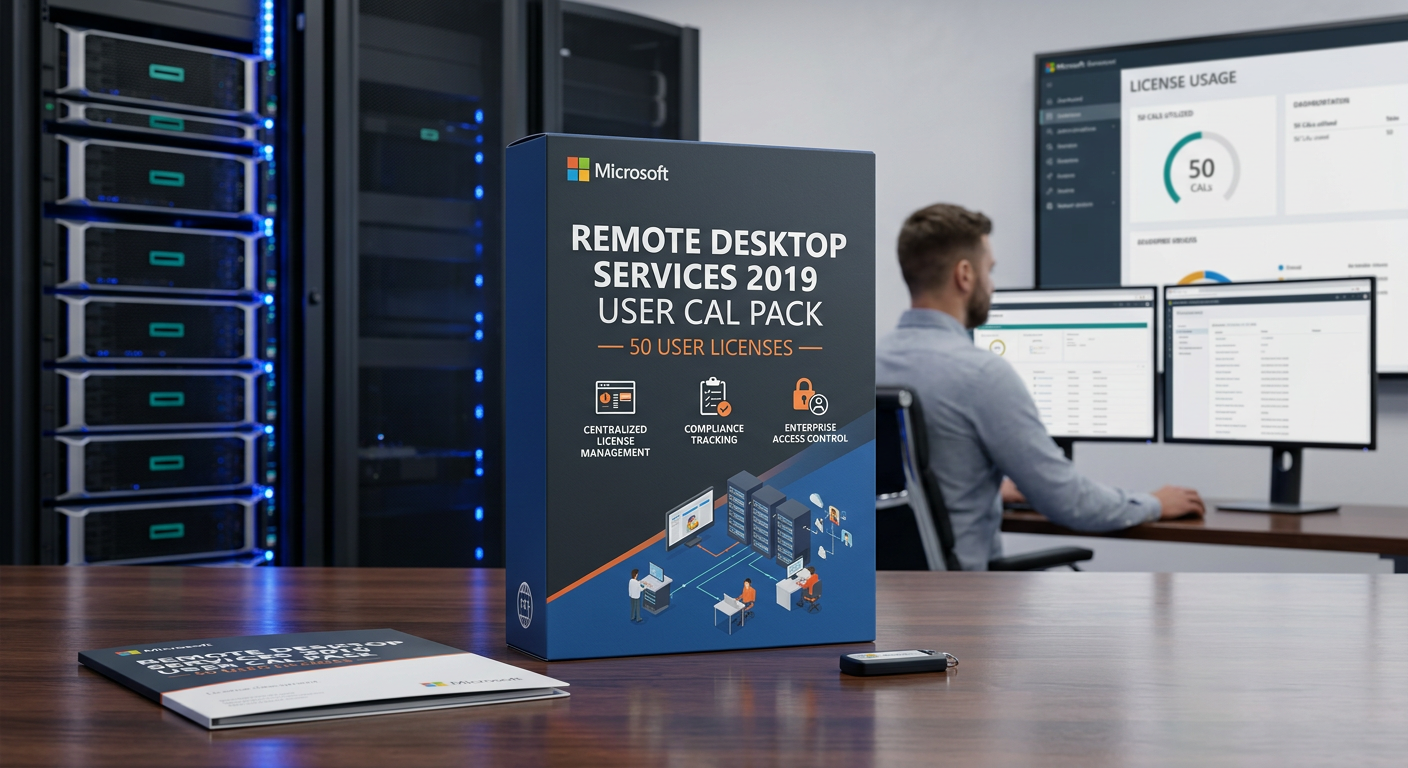The Windows Server 2019 RDS 50 User CAL pack provides Remote Desktop Services Client Access Licenses for 50 named users to connect via Remote Desktop from any device. Remote Desktop Services (RDS) CALs are required in addition to standard Windows Server CALs when users or devices connect to a Windows Server via Remote Desktop for full desktop sessions, RemoteApp published applications, or VDI (Virtual Desktop Infrastructure). Without RDS CALs, Remote Desktop connections are limited to two concurrent administrative sessions per server. RDS CALs unlock the full Remote Desktop Session Host functionality, enabling multiple users to connect simultaneously to a shared server desktop or individual published applications. This is the foundation of thin-client computing, terminal server deployments, and centralized application hosting — where applications run on the server and only the display, keyboard, and mouse signals travel across the network. For organizations with remote workers, branch offices, or BYOD policies, RDS provides a secure way to deliver corporate applications without installing software on end-user devices. All data stays on the server, reducing the risk of data loss from stolen or compromised laptops. This 50-pack provides User CALs specifically for Windows Server 2019 with downward compatibility to older versions. RDS CALs are required in addition to — not instead of — standard Windows Server CALs. Each connecting user or device needs both a Windows Server CAL and an RDS CAL. RDS User CALs are perpetual and do not expire. They support all RDS deployment scenarios including session-based desktops, RemoteApp programs, VDI personal desktops, and VDI pooled desktops. The licenses cover connections through Remote Desktop Gateway, Remote Desktop Web Access, and direct RDP connections.